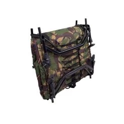 Deze unieke System bedchair van Aqua products is de eerste in zijn soort met DPM camouflage print. Het bed is zo ontworpen dat vrijwel alle wensen van een karpervisser vervult zullen worden, het biedt ultieme mobiliteit en optimaal comfort. Het gewicht van 11kg is zo minimaal dat deze bedchair ook in de kortste sessies met gemak mee te nemen is. Het is een aluminium constructie met 6 poten. Het scharnier is zo gemaakt dat het resulteert in een volledig vlak profiel en compacte transport afmeting. De bedchair is uitgerust met een gepatenteerd pootmechanisme, door op de knop de drukken schuift de poot automatisch naar onderen. De slaapzak is handig te verwijderen met gebruik van klittenbandstroken.