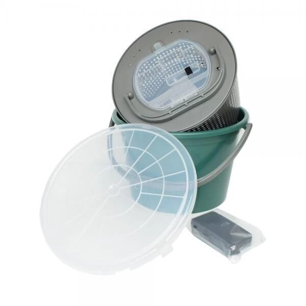 De binnen emmer is voorzien van gaten zodat men het water kan verversen.