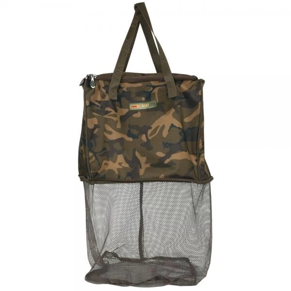 De Fox Camolite Bait/Air Dry bag is een voertas met een extra functie: de bodem heeft namelijk een geïntegreerd ‘drop down’ systeem dat je kunt uittrekken, hierdoor komt er een mesh tas tevoorschijn. Dit maakt van deze tas ook een droogtas en is perfect voor het drogen van boilies tijdens langere sessies.Met zijn afmetingen van 36 x 32 x 29cm past de Fox Camolite Bait/Air Dry bag perfect in de mesh vakken van alle Explorer barrows. Deze tas is voorzien van dubbele heavy duty ritsen en polyester draaggrepen met heavy duty clips. Gaaf uitgevoerd in het uniek Fox Camo patroon.