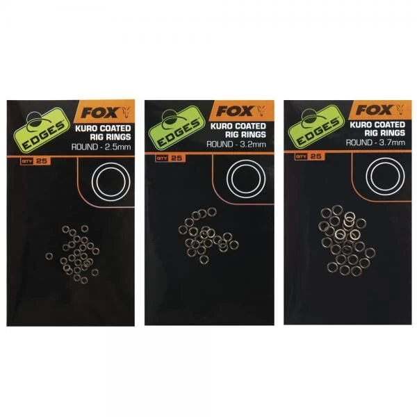Fox Kuro gecoate Rig Rings zijn rond en hebben een matte coating waarmee ze makkelijk glijden over de haaksteel of een D-rig. Er zijn 3 maten verkrijgbaar. Deze rings zitten verpakt per 25 stuks.
