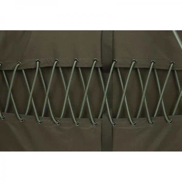 Het Compleet Fox Flatliner 8 Leg Bedchair slaapsysteem met een Flatliner 3 season slaapzak is vernieuwd en verbeterd van ontwerp. Zo is het frame volledig plat voor maximaal comfort. Uitgevoerd met dubbele scharnieren waar het elastiek doorheen loopt zodat de stevigheid van het matras overal even consistent. Het hoofdgedeelte, het midden en het voetgedeelte profiteren van het Full Lumbar Support zodat het matras overal even stevig is. Het 50mm dik matras van High Density foam zorgt voor een zacht maar toch stevig en comfortabel ligvlak. De randen van het matras zijn gemaakt van steviger foam zodat de randen niet voelbaar zijn. Aan de onderzijde van het matras een bevestigings rits om alle flatliner slaapzakken aan te kunnen bevestigen. Door de 8 poten, waarvan twee dubbele poten op het centrale deel van het frame en dubbele poten aan het hoofd- en voeteneinde is de Fox Flatliner 8 Leg Bedchair een super stabiele bedchair. De poten zijn uitgevoerd met het nieuwe ‘One Touch’ Spring Lock meganisme waarmee je de bedchair op iedere ondergrond perfect kunt afstellen zodat deze stabiel staat. Dan het Side Tension Strap Ontwerp ( aan elke zijde een riem die om het frame wordt bevestigt in plaats van over het matras) hierdoor kun je de bedchair veel compacter op vouwen dan bedchairs met een enkele, centrale riem. En tot slot Velco strips aan de onderzijde van het matras om alle slaapzakken van Fox en covers aan te Fixeren.
