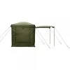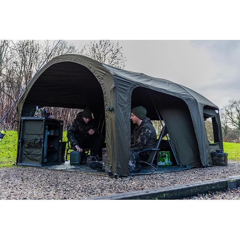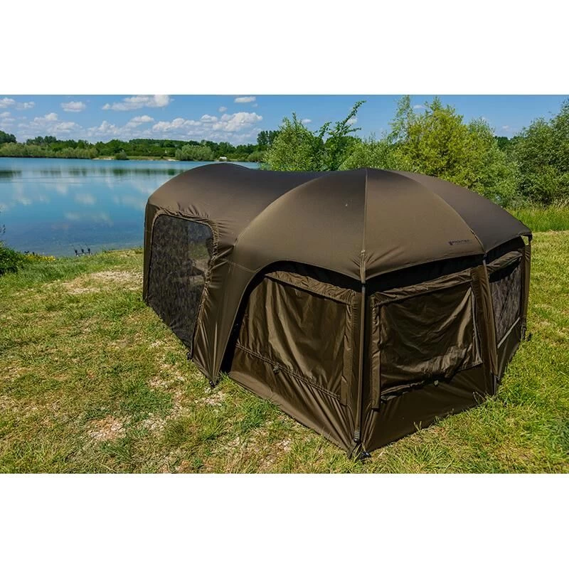 Met deze extension krijg je extra veel ruimte en vergroot de schaduw bij je bivvy. Het heeft een khaki gekleurd VenTec doek met kleurlaminaat en een waterdichtheid van 20.000mm. Ook reduceert het condensvorming. De solide zijpanelen kunnen volledig verwijderd worden of vervangen worden door mozzy mesh panelen. Het voorpaneel kan ook worden uitgenomen of worden vervangen door een mozzy voorpaneel, ook heeft het 2 deur opties: helder PVC en solide.