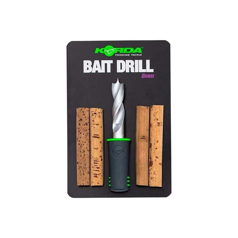 De Bait Drill heeft een zwart en groen ergonomisch ontworpen handvat, zodat u een goede grip heeft voor precisieboren. De 4mm en 6mm packs bevatten één Bait Drill en 6 kurkstaafjes, de 8mm pack bevat één Bait Drill en 4 kurkstaafjes en de 1mm pack bevat één Bait Drill zonder kurkstaafjes. Reserve kurkstaafjes in 4mm, 6mm, en 8mm zijn ook verkrijgbaar, en worden verkocht in verpakkingen van 10.