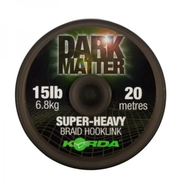Korda Dark Matter braid zinkt snel en heeft een subtiele camouflage afwerking, waardoor deze onzichtbaar is voor angstige vissen. Is gemaakt van een super-sterke gevlochten lijn en is dan ook geschikt voor vele soorten rigs. De braided hooklink is onzichtbaar op de meeste bodems.