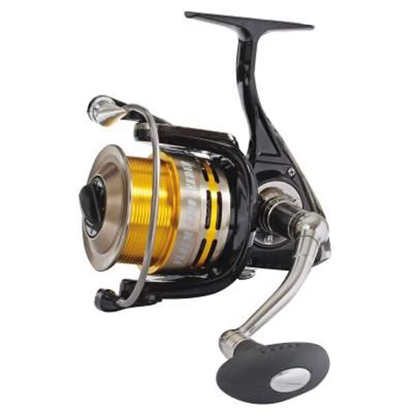 De RYOBI VERUM II 4500 FEEDER & MATCH is de Power molen voor het feederen of het dobbervissen op afstand. De absoluut torsievrije behuizing van ALULight zorgt voor een onovertroffen lichte loop, ook bij zware belasting. De lijnplaatsing van zelfs de fijnste gevlochten lijnen is perfect! Dankzij de HIGH SPEED overbrengingsverhouding wordt de lijn zeer snel binnengehaald, zelfs bij het vissen op afstand. Alle spoelen zijn voorzien van 2 metalen lijnklemmen met veermechanisme. De RYOBI VERUM II 4500 FEEDER & MATCH wordt geleverd met 2 platte aluminium spoelen.